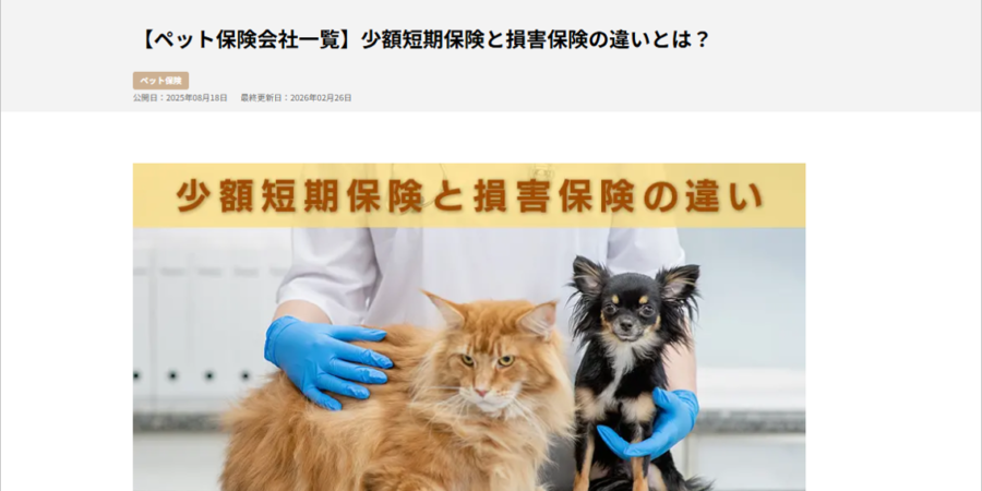 2026.3.23 Webサイト「ペット保険比較ピクシー」様にて、記事の監修をさせていただきました。 公開記事はこちら➤【ペット保険会社一覧】少額短期保険と損害保険の違いとは? &nbs
